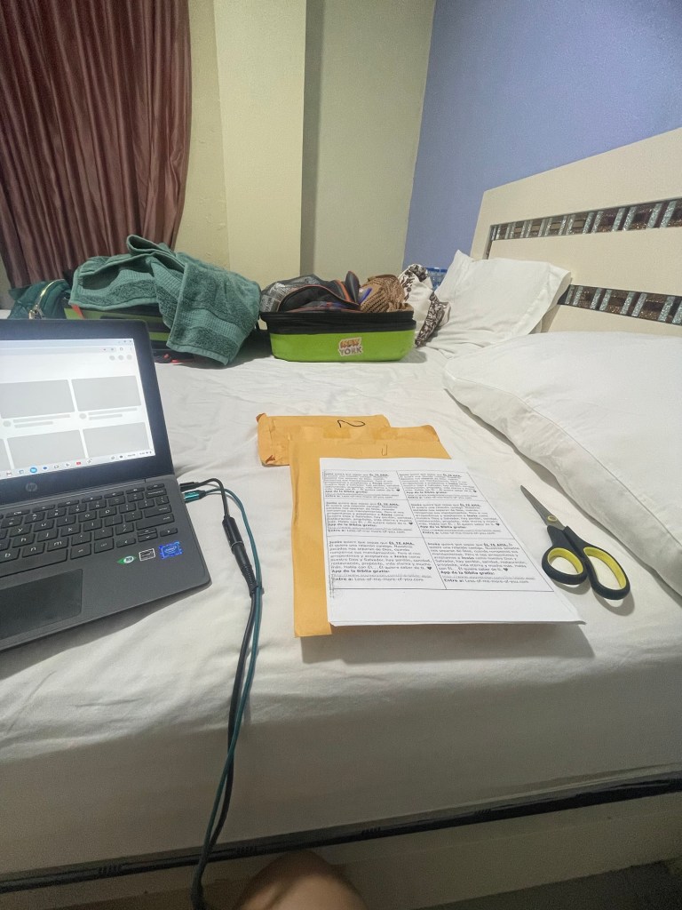 After I was led to make more copies of the Good News of Jesus paper getting a discount of $2 pesos per copies after the young man read the message the paper said and then I was led to get bottles of water to have in the room to drink and everyone received the Good News of Jesus paper in the businesses and on the way. I get so emotional as the Holy Spirit has had me in so many places, wow, all of Central America, South America, Africa, Spain, Amsterdam, Turkey, France, here in the Dominican Republic and the USA. I never thought I would be going anywhere, but the Lord knew, as growing up I did not have any long lasting relationships and I seemed so detached from everything.